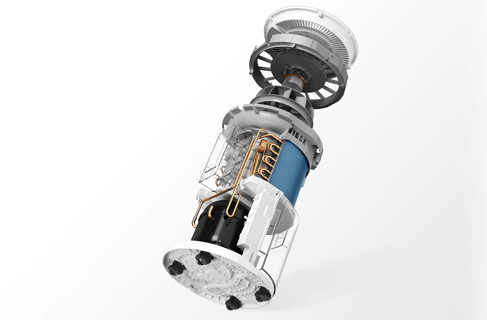 Биомиметические лопасти вентилятора создают мягкий шум воздушного потока. Усиленный металлический лист снижает вибрацию. Фирменный компрессор, изготовленный на заказ, также способствует снижению шума. Виброгасящие вкладки дополнительно снижают шумоподавление.