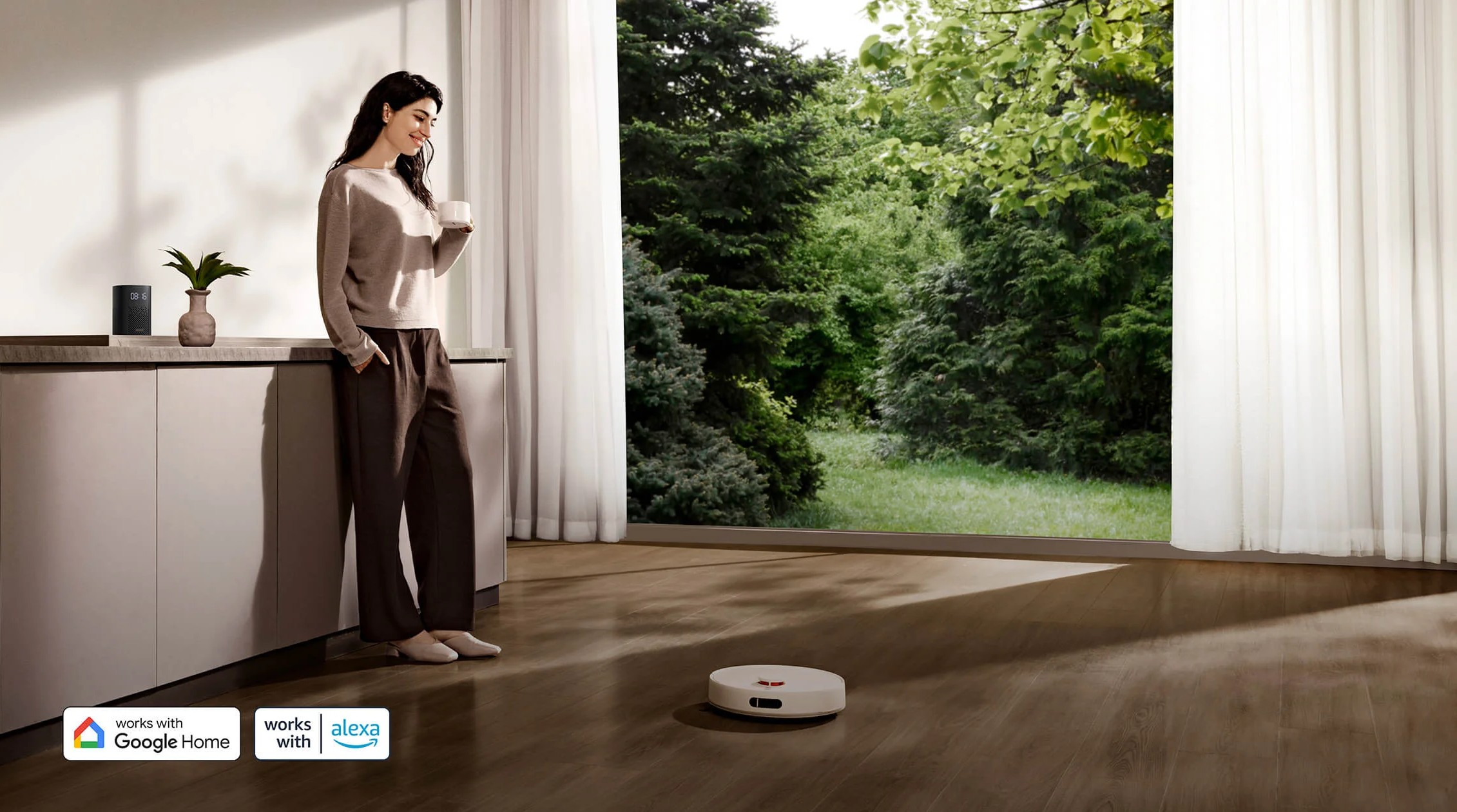 Роботом можно управлять из приложения Xiaomi Home: запускать уборку, задавать расписание, настраивать мощность и подачу воды. Поддерживается голосовое управление через Google Assistant и Amazon Alexa.
